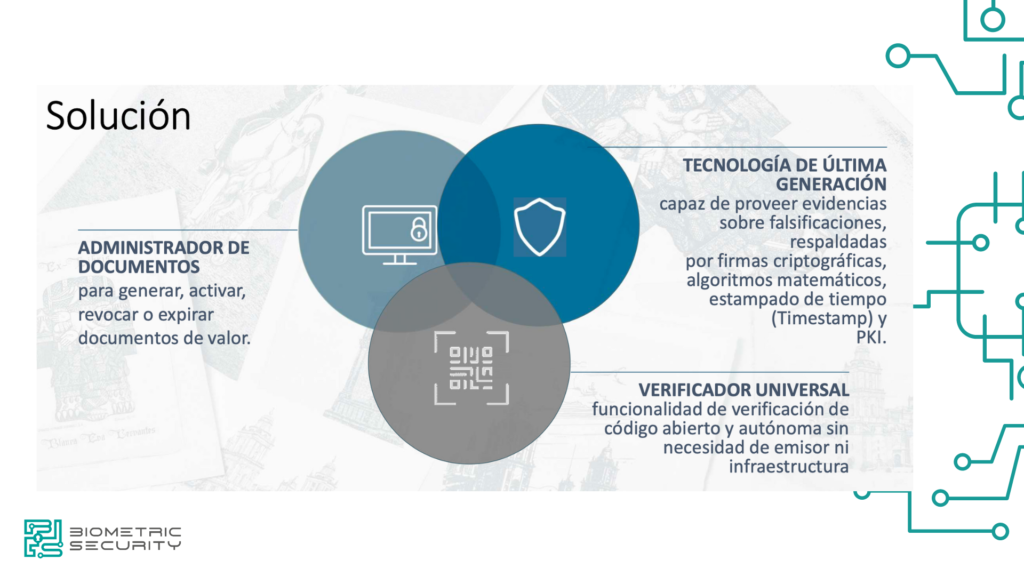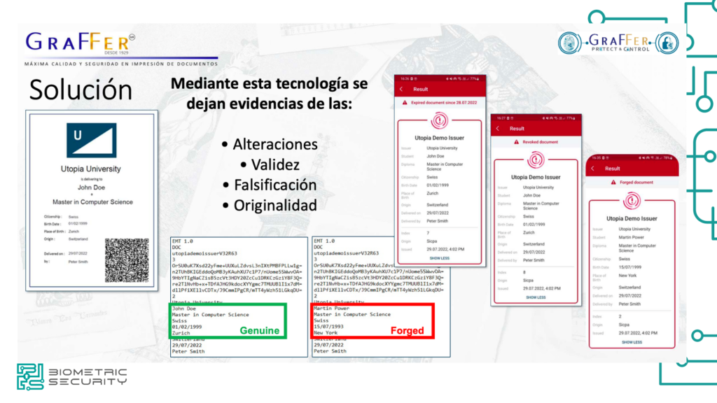 De la mano de Biometric Security, le ofrecemos a vuestra Institución las soluciones más vanguardistas en lo que a seguridad documental refiere, logrando de esa manera evitar que la documentación expedida sea objeto de falsificaciones.